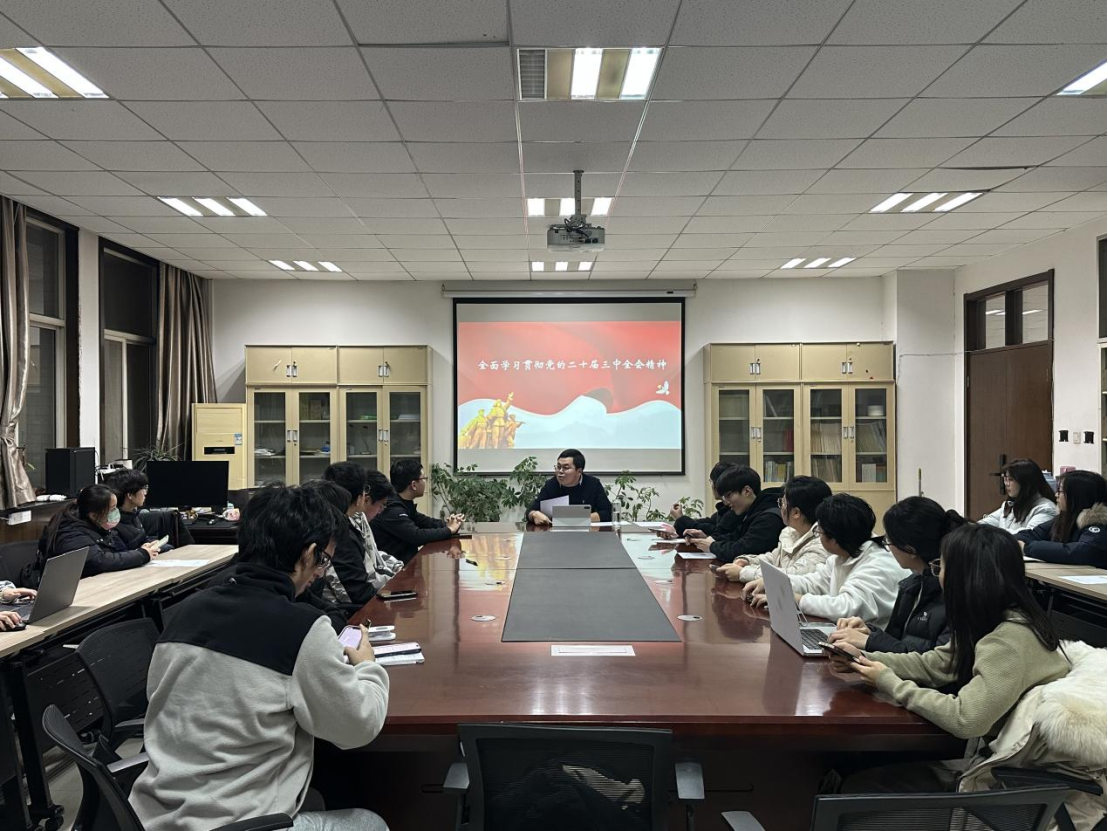为充分发挥“一站式”员工社区思政铸魂育人功能,引导广大学子深入贯彻落实党的二十届三中全会精神,进一步增强员工干部的政治责任感和使命感,12月4日,3044永利集团在公司资料室召开“贯彻落实党的二十届三中全会精神”主题教育活动,本次活动由2023级辅导员昌盛老师主持,2023级全体班长团支书参加。