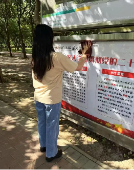 活动结束后,鲁濡铭同学向大家分享了西安市莲湖区北院门街道学习巷社区党支部书记白秀兰的故事。工作的18年间,她共资助 467 名贫困老员工,在疫情期间坚守防控一线,荣获“全国劳动模范”、“全国三八红旗手”等荣誉,所在社区获评“全国先进基层党组织”。白秀兰同志作为党员,始终扎根于人民群众之中,始终发挥着党员的先锋模范作用,为人民排忧解难,是我们每一位党员学习的榜样。