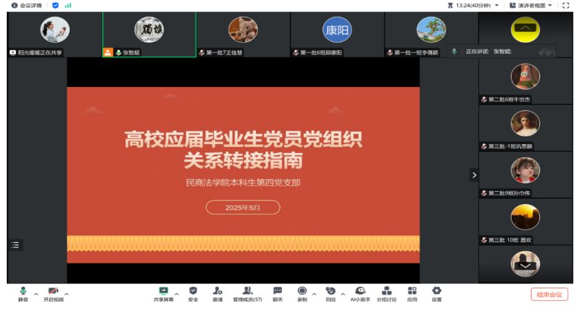 会上,丁艳艳说明了高校毕业生党员组织关系转接的必要性与重要性,重点从国内升学、出国出境、已经落实工作单位、尚未落实工作单位几种类型详细介绍了高校毕业生党员组织关系转接的流程与注意事项。同时,对高校毕业生党员在组织关系转接中的常见问题进行了讲解。