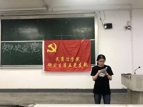方宁领学了习近平总书记《论中国共产党历史》一书中《革命精神是党和国家的宝贵财富》《崇尚英雄、学习英雄、关爱英雄》等篇章;组织委员罗心眸、宣传委员陈艺蓉分别领学了《新时代中国共产党的历史使命》《了解历史才能看得远,永葆初心走得远》《毛泽东邓小平江泽民胡锦涛关于中国共产党历史论述摘编》一书中毛泽东和邓小平的重要论述部分内容等篇章。