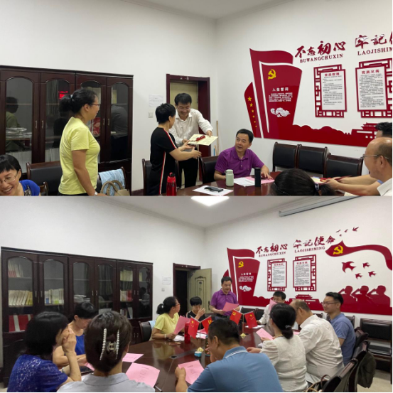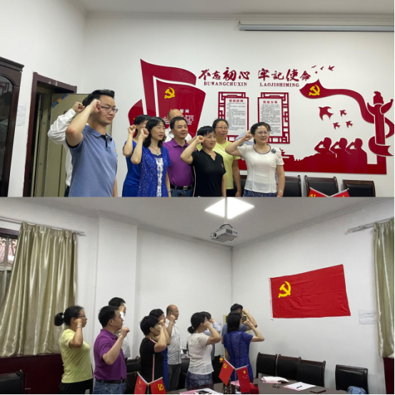 为庆祝中国共产党成立100周年,落实《关于开展党旗在基层一线高高飘扬活动的通知》要求,6月24日下午,民法教研室党支部在雁塔校区召开“共过‘政治生日’强党性,重温入党誓词守初心”主题党日活动,副董事长张荣刚、支部全体党员、优秀员工党员代表参会,会议由支部书记贾同乐主持。
