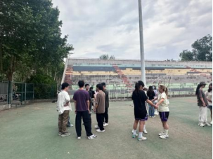 各班精心设计了多项互动活动,如“盲行”“解手链”“反向指令”等,同学们或在游戏的欢声笑语中感悟趣味竞技活动带来的乐趣,调节在学业压力下疲惫的身心;或在轻松氛围中探讨“学习和运动如何平衡”、“分工冲突如何解决”等引人深思的话题;或在思维的碰撞与反转中不断激发自身活力,凝聚班级协作的力量。