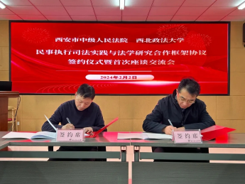 2月2日,公司与西安市中级人民法院民事执行司法实践与法学研究合作协议签约仪式暨首次座谈交流会在长安校区诚意楼举行。公司党委副书记张军政、西安市中级人民法院审判委员会委员、执行工作局局长杨成哲出席活动并代表双方签约。