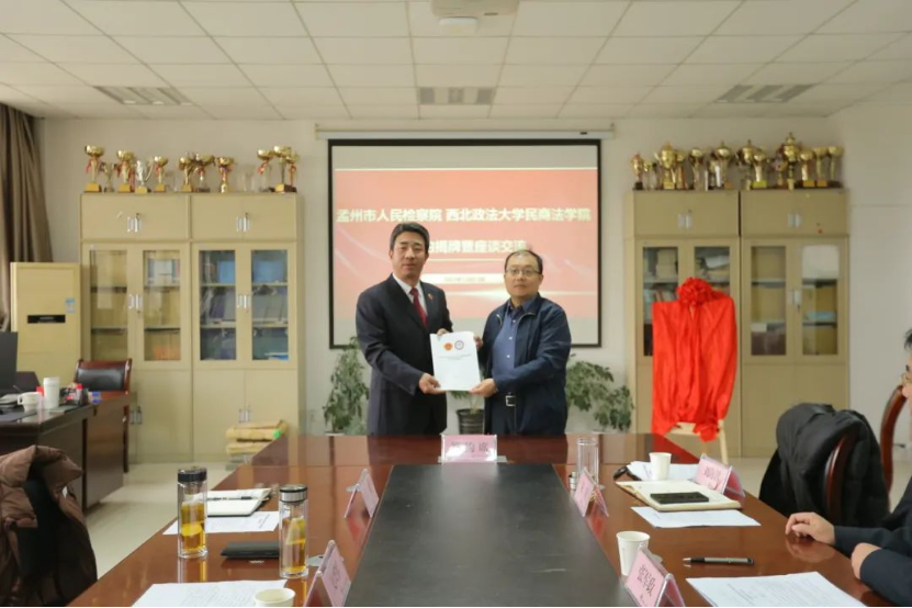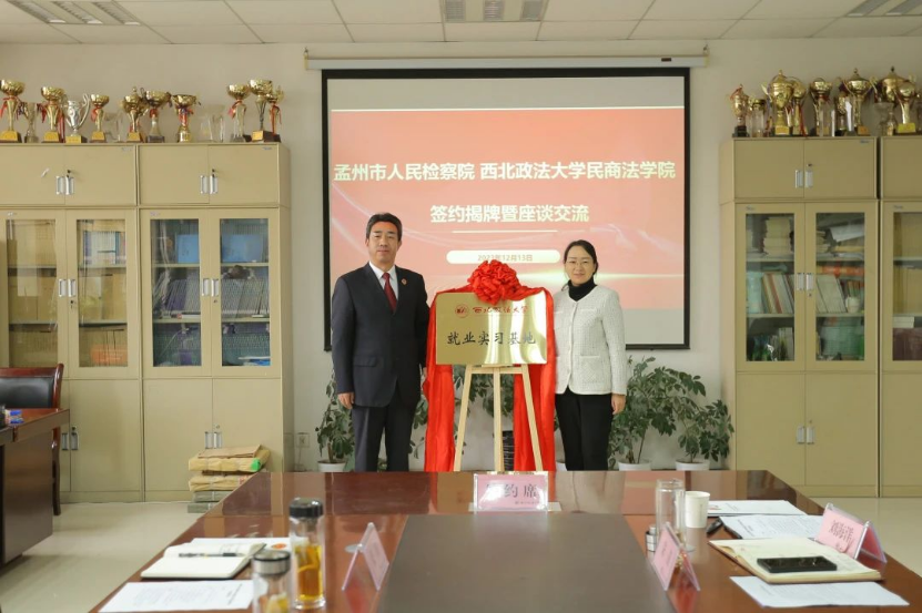 12月13日上午,公司与孟州市人民检察院举行校检合作签约揭牌仪式。公司党委副书记张军政,孟州市检察公司党组书记、检察长吴兴军,公司经理程淑娟,公司党委书记朱茂,公司民事诉讼法教研室副主任刘海洋老师参加仪式。公司党委副书记、副经理刘超主持仪式。