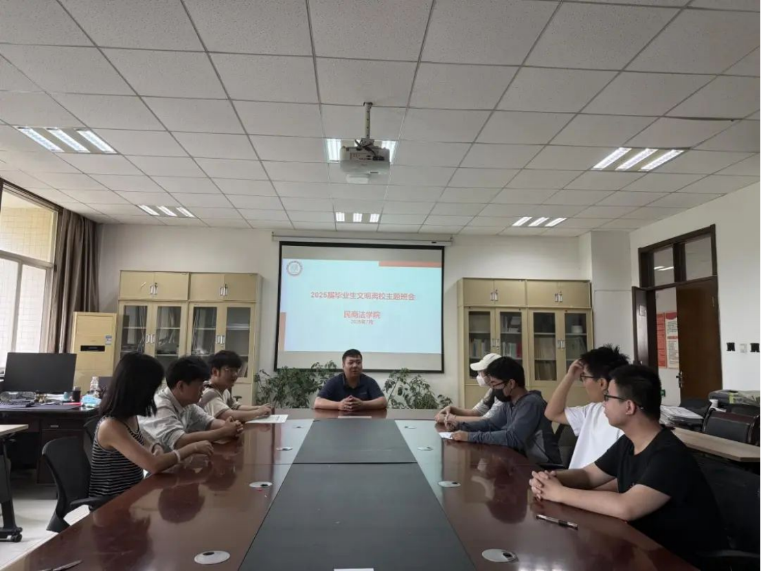 7月1日,3044永利集团2025届本科生毕业生于公司资料室召开“文明离校·青春远航”主题班会,2025届本科毕业生辅导员张智超及各班班委参会。