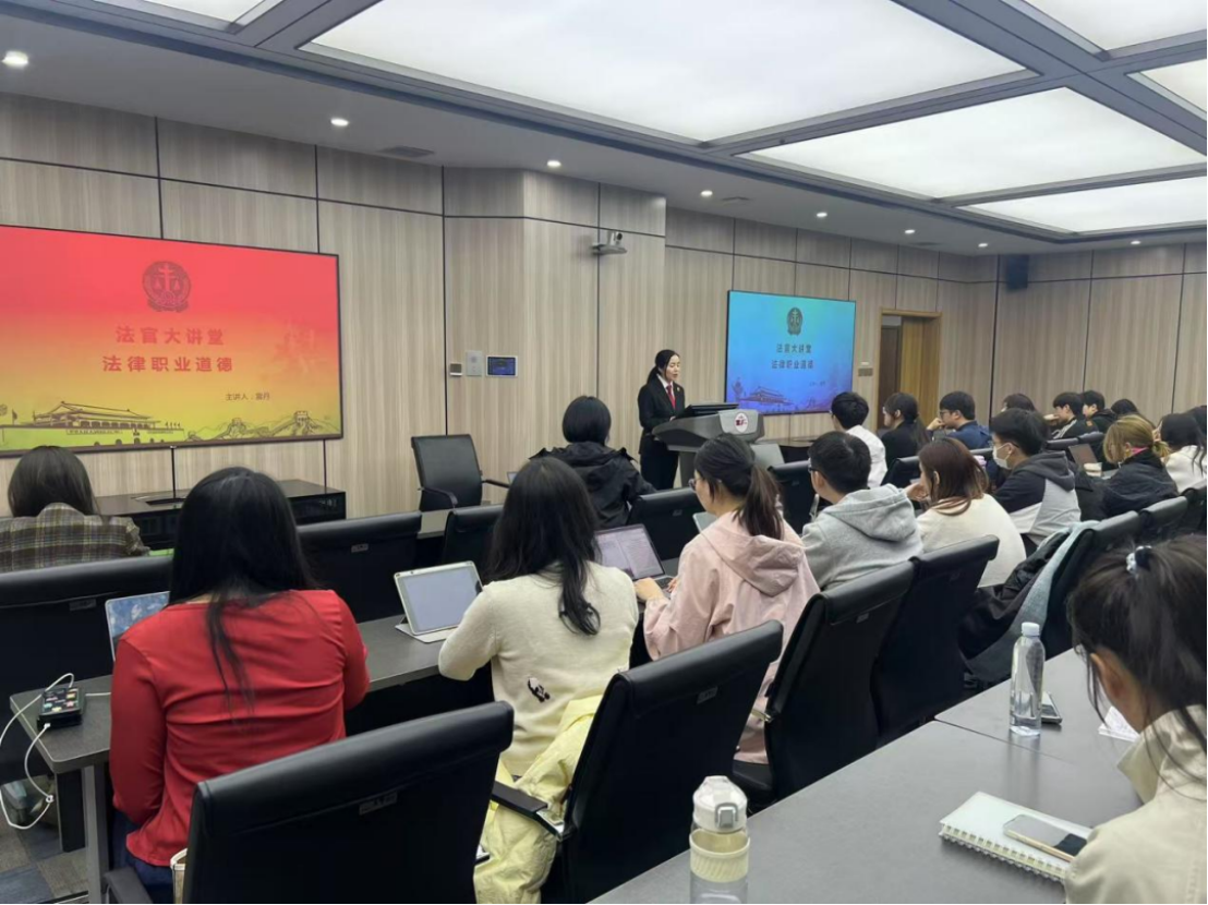 雷丹法官还提出,法律职业者要有一颗淡泊名利之心。法律职业是一个自主自律的职业,法官、检察官、律师等法律职业都有其必须遵守的职业道德规范。因此,成为一名优秀的法律职业者必须要加强自我管理,要爱岗敬业、清正廉洁、克己奉公,要信仰法律、崇尚法律。在办案中不畏权势,不徇私情不谋私利,正确处理法律与情理,法律与道德之间的关系,维护法律的尊严,让清廉之花盛开在自己的职业生涯。