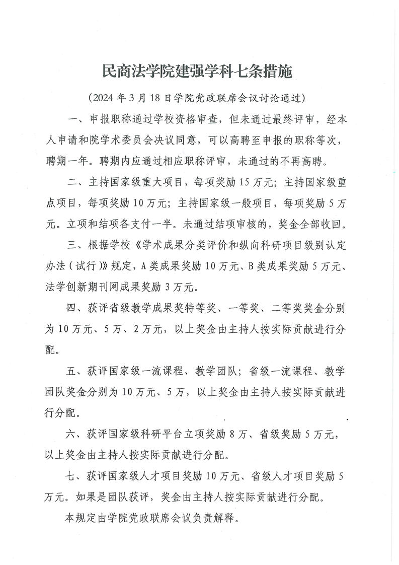 关于印发《3044永利集团建强学科七条措施》的通知